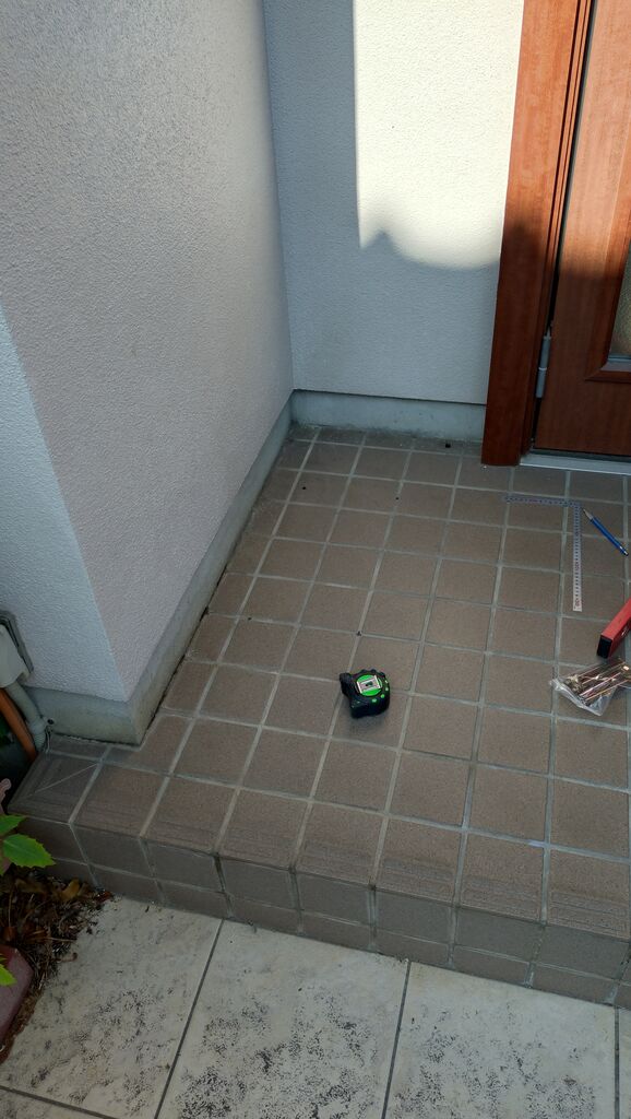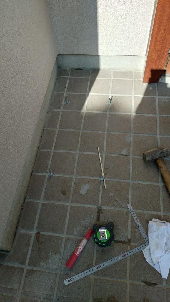 穴を開けていてタイルを割ってもダメなので「タイルの目地内」で位置を決めていきます。