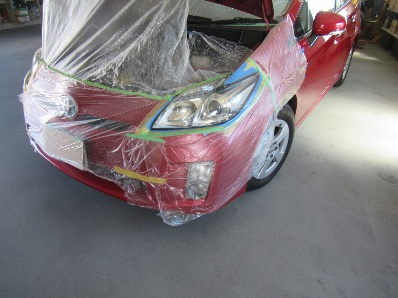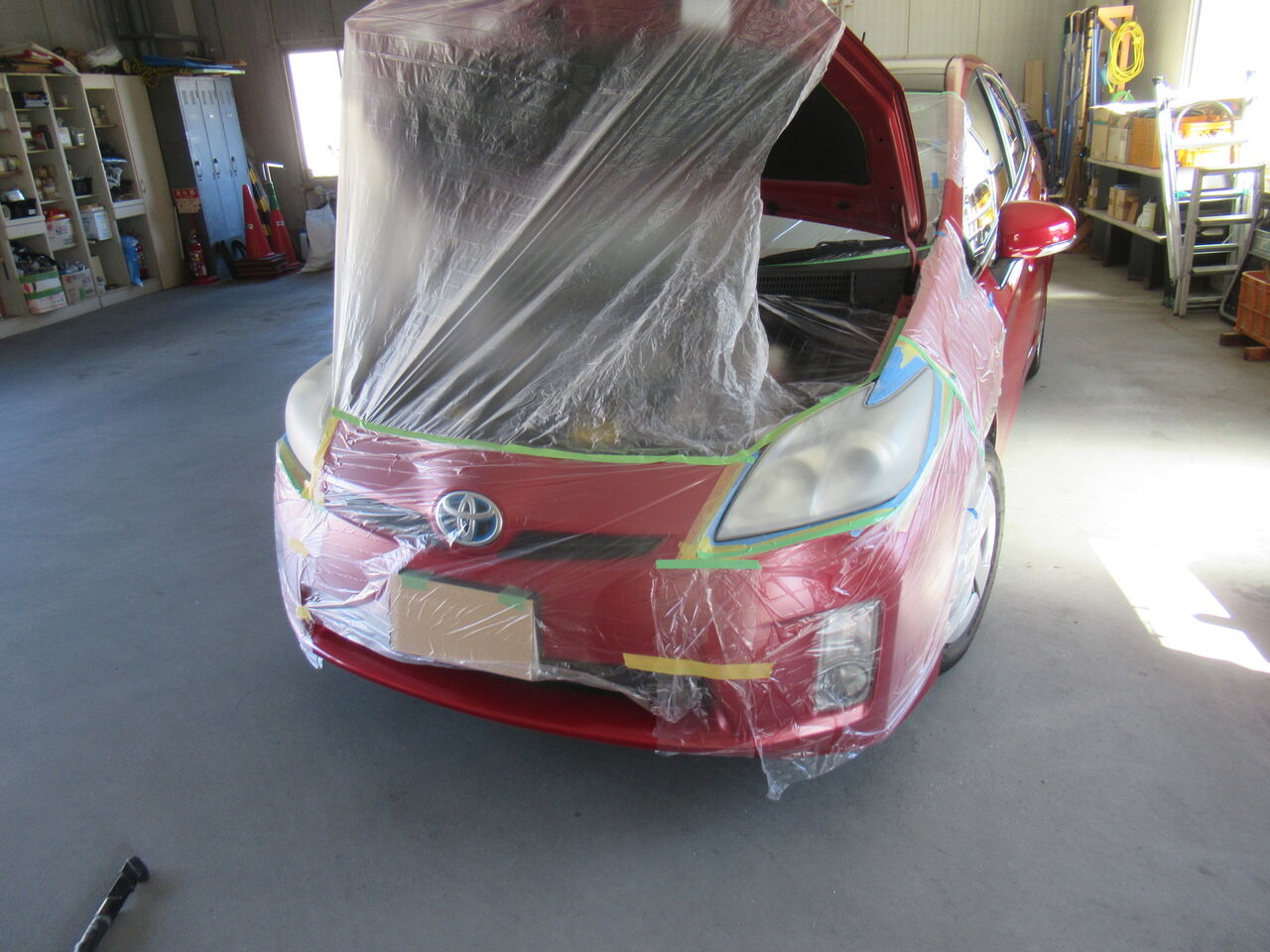 ウレタンが窓や塗装面に付くと面倒なのでこれも念入りにマスキングします。