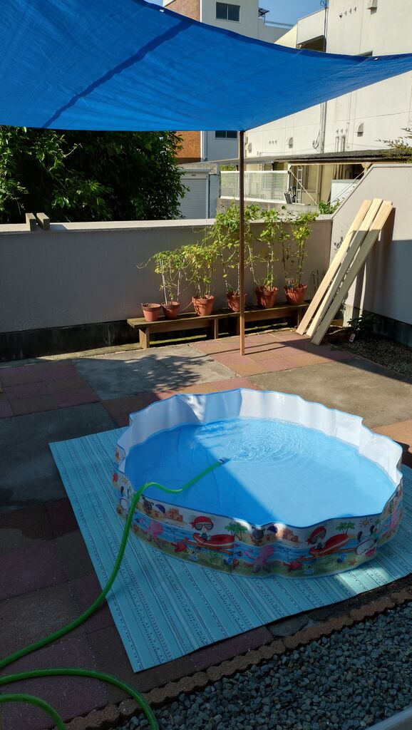 要は娘の自宅でこういう風に「準備」するのが面倒なのでうちでプールをしようというもの。