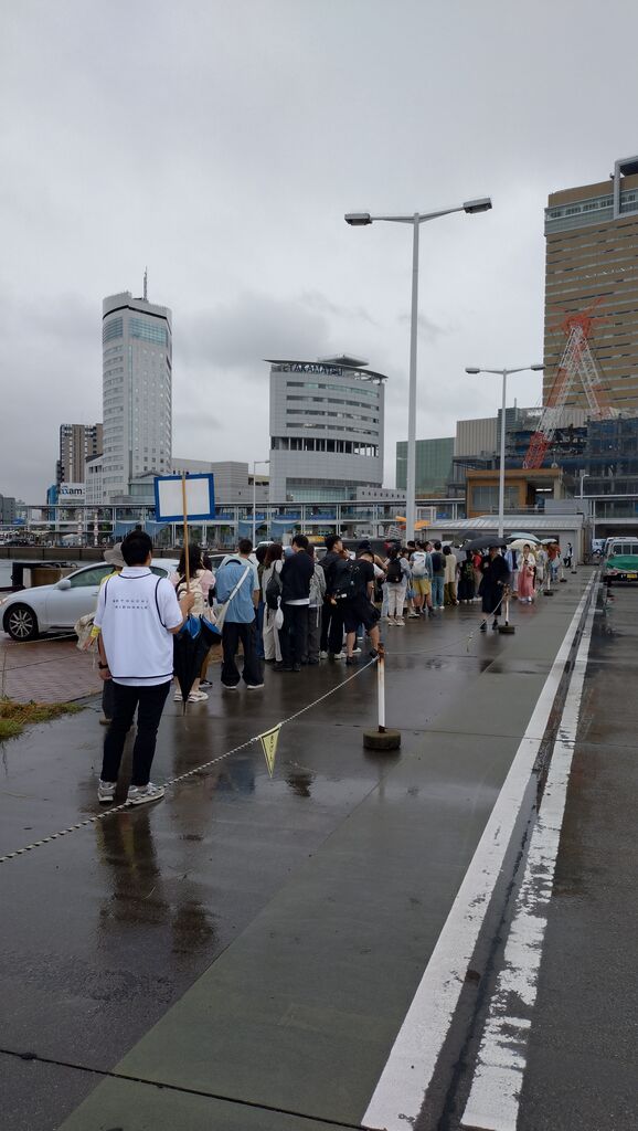 朝の7時40分くらいに高松港に着いたら雨が降ってるのに既にすごい行列。