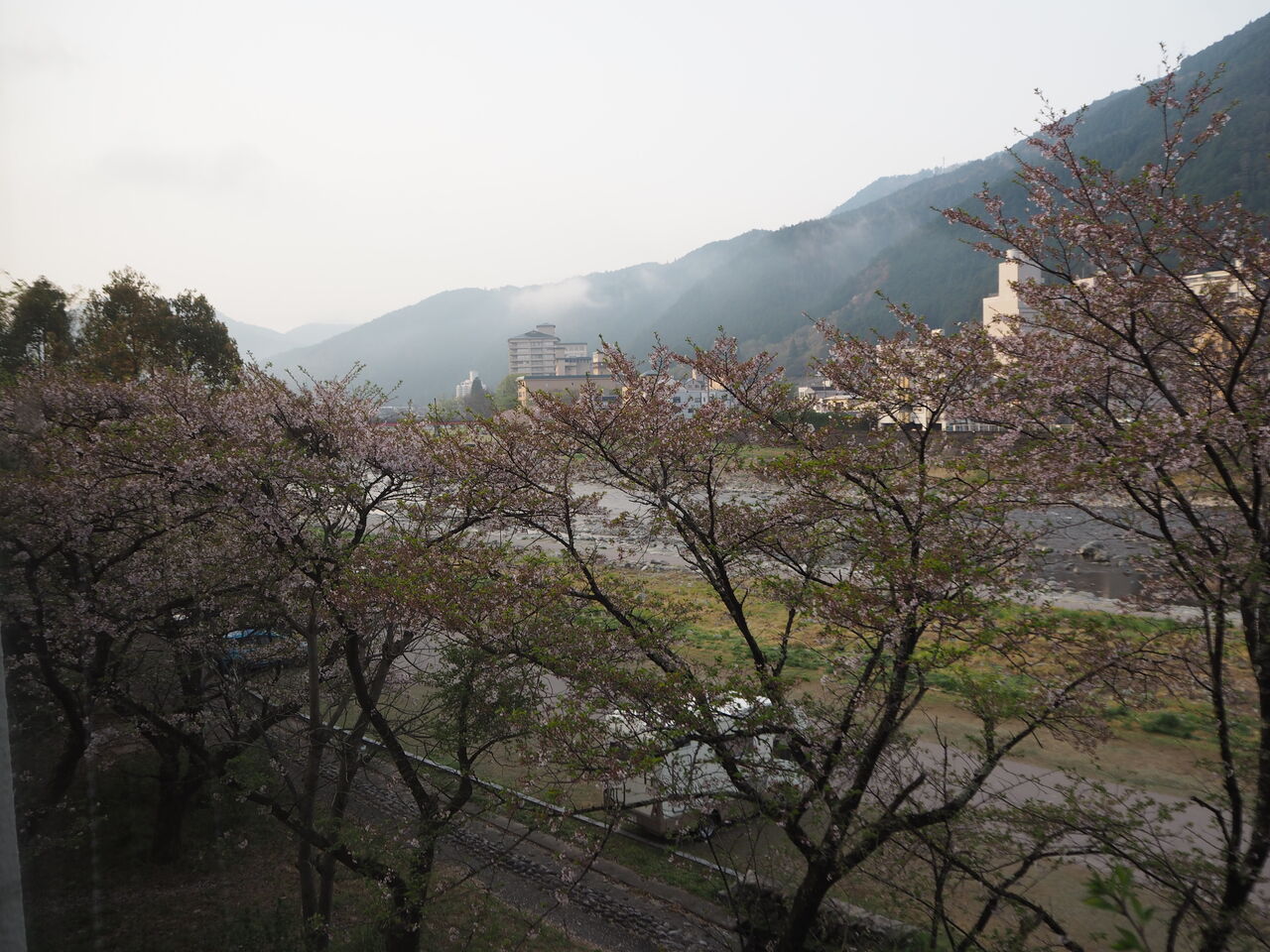 何も無い田舎道を走っていたらいきなり現れる「下呂温泉」のビル群。