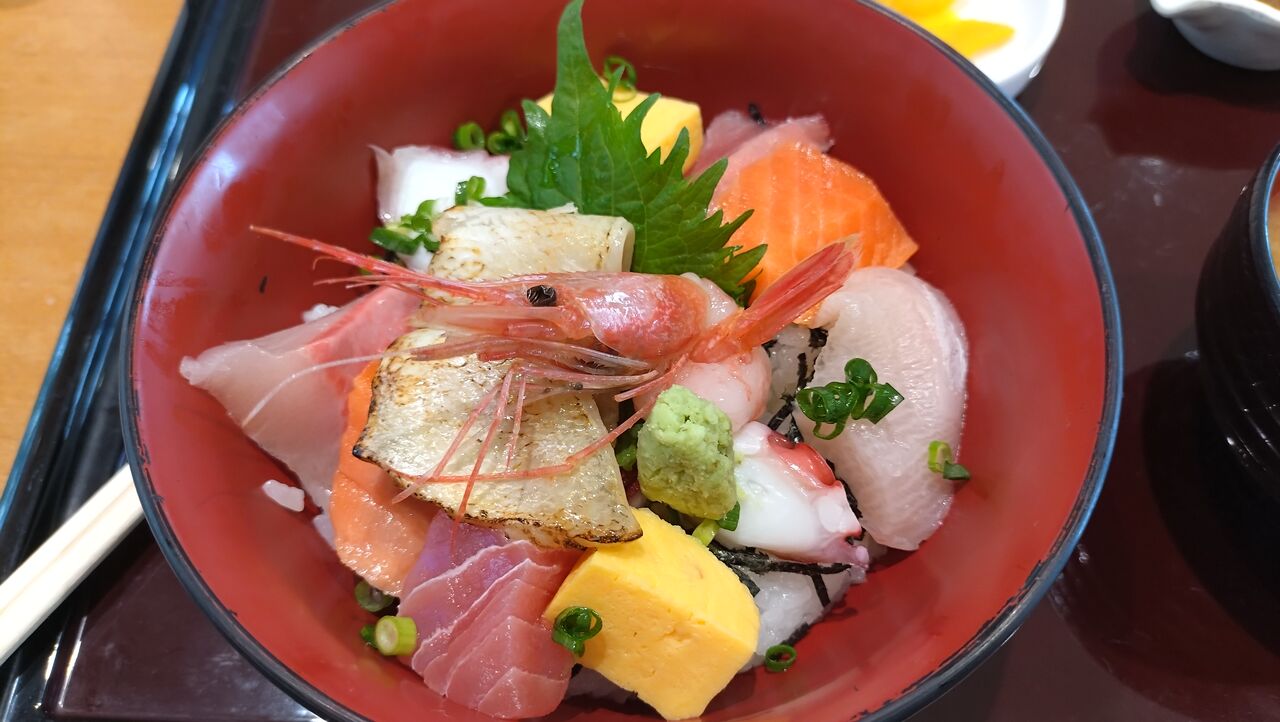 金沢の手前で昼が来たので、たまたまあったSAで「のどぐろ海鮮丼」。