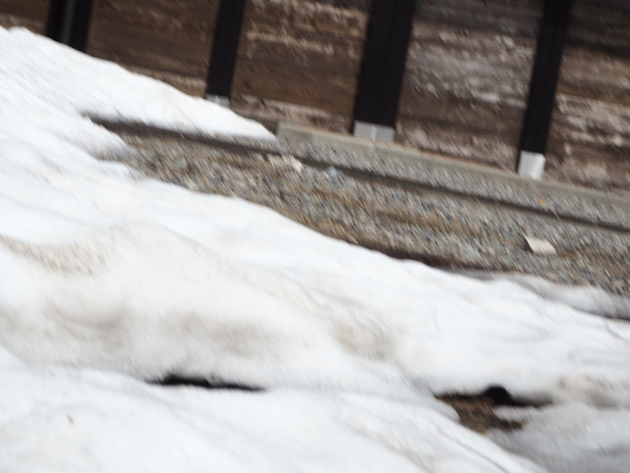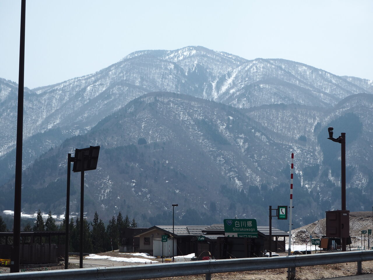 山は雪が大量に残っている。